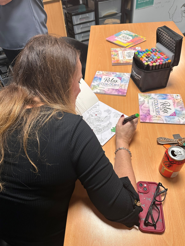 Our Wellbeing Wednesday programme invites staff to enjoy a range of relaxing and enjoyable activities, from crochet, henna art and wellbeing colouring to gaming and other creative opportunities. Refreshments, warm conversation, and a genuine sense of togetherness make these moments a highlight of the week for many colleagues.