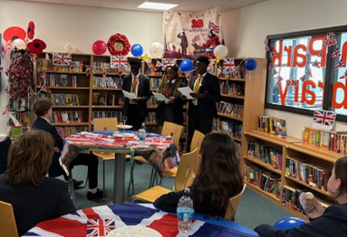 Our very own Mrs Everitt and Ms Scott have been leading VE Day events in the library all week. Students have been watching clips of VE Day celebrations and listening to wartime music at lunch time. As part of the activities, students are writing VE Day-inspired poems for a poetry competition. To celebrate VE day students delivered speeches inspired by WW1. Students were invited to listen while enjoying a VE day Tea party organised by Mrs Padmore, the way they did 80 years ago with a tea party.